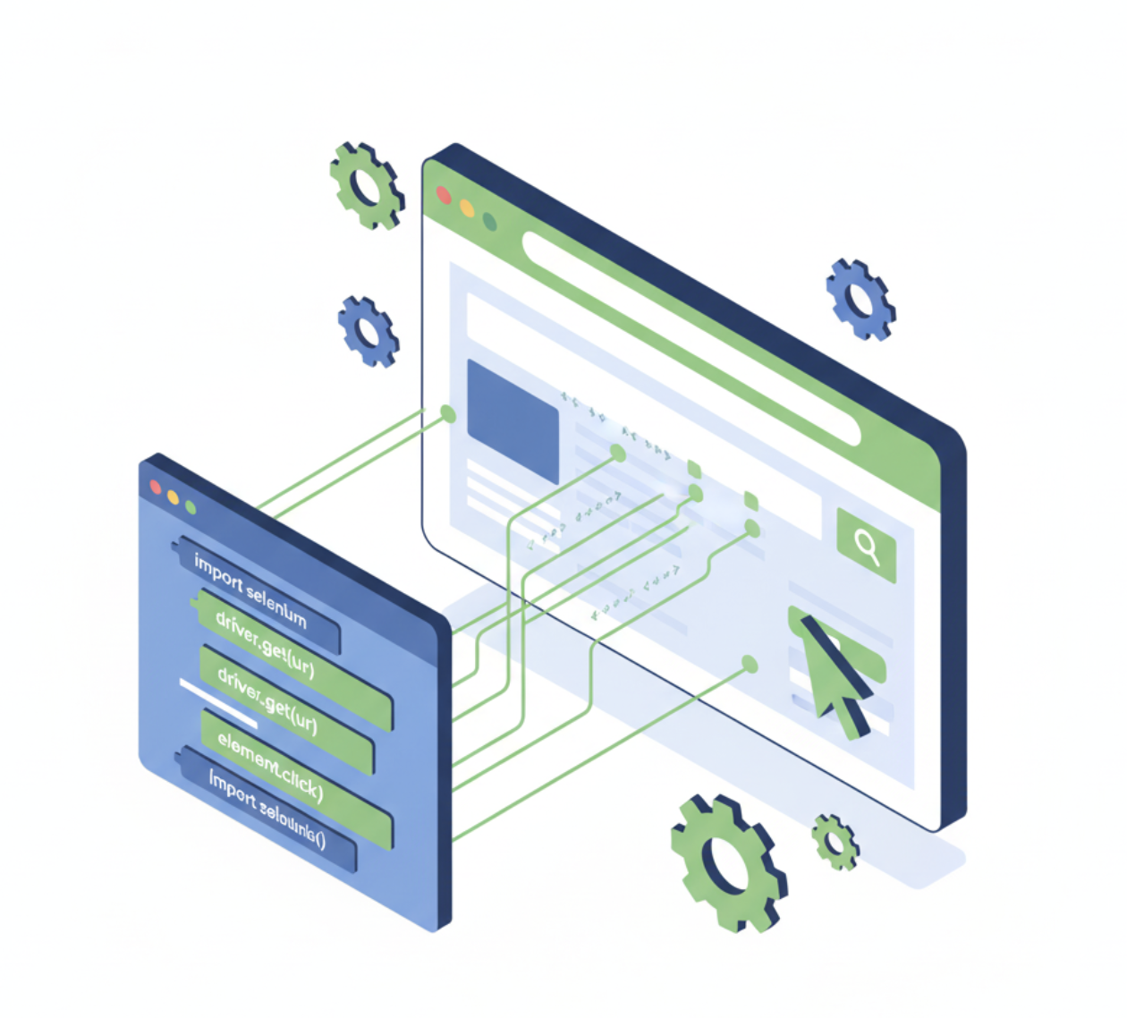 "셀레니움이란 무엇인가요?" 셀레니움은 브라우저를 자동으로 움직이게 하는 소프트웨어입니다. 마치 우리가 마우스로 클릭하고 키보드로 입력하듯이, 셀레니움은 코드를 통해 실제 웹 브라우저를 조작하여 웹 페이지를 탐색하고, 데이터를 추출하며, 복잡한 테스트 시나리오까지 수행할 수 있게 해줍니다.
