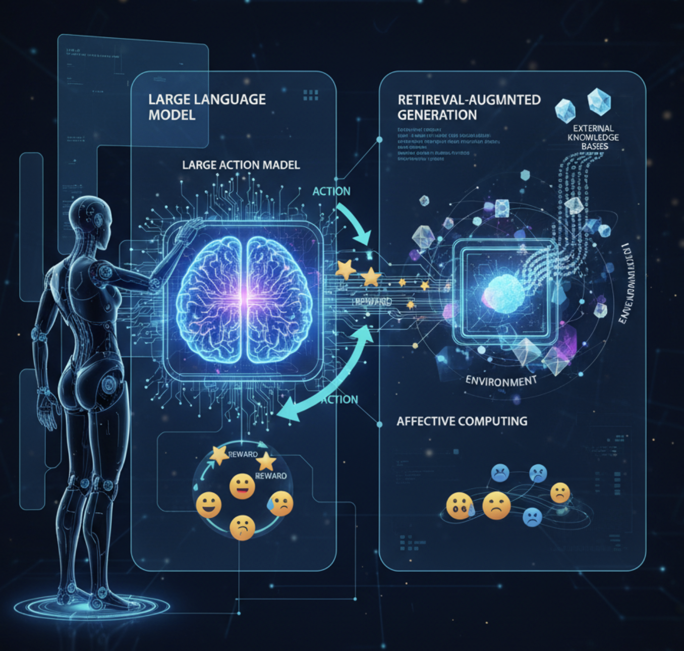 이 글은 이러한 기술의 복잡성을 해소하고, 다가올 AI 시대를 주도할 다섯 가지 핵심 기술, 즉 거대 언어모델(LLM), 거대 행동모델(LAM), 강화학습(Reinforcement Learning), 검색증강생성(RAG), 그리고 감성 컴퓨팅(Affective Computing)을 비전공자도 통찰력 있게 이해할 수 있도록 돕기 위해 기획되었습니다. 각 기술이 무엇인지, 어떤 원리로 작동하는지, 그리고 왜 우리가 이 기술들에 주목해야 하는지에 대한 명확하고 쉬운 설명을 제공할 것입니다. 이 기술들은 개별적으로도 강력하지만, 서로 결합될 때 훨씬 더 큰 시너지를 발휘하여 상상 이상의 가능성을 열어줍니다.