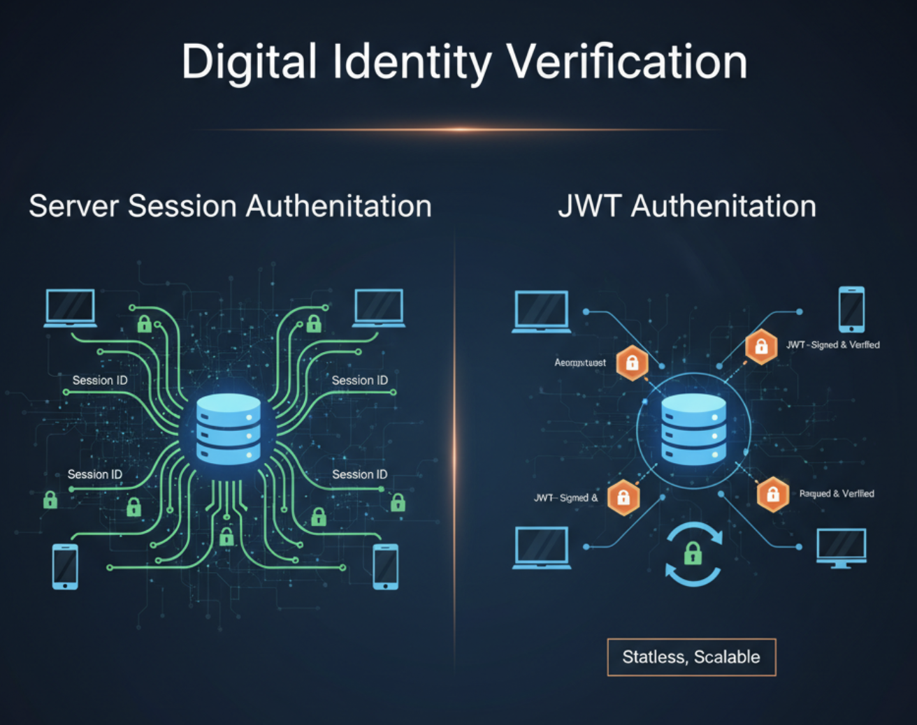 모든 웹 애플리케이션의 핵심 기반은 사용자를 안전하게 식별하고, 요청이 올바른 사용자에 의해 이루어졌는지 확인하는 것입니다. 현실에서 여권이나 신분증으로 본인을 증명하듯, 디지털 세계에서도 사용자 인증은 필수적인 과정입니다. 수많은 인증 시스템 설계 방식 중, JWT(JSON Web Token)와 서버 세션은 가장 대표적이고 널리 사용되는 두 가지 방식입니다.