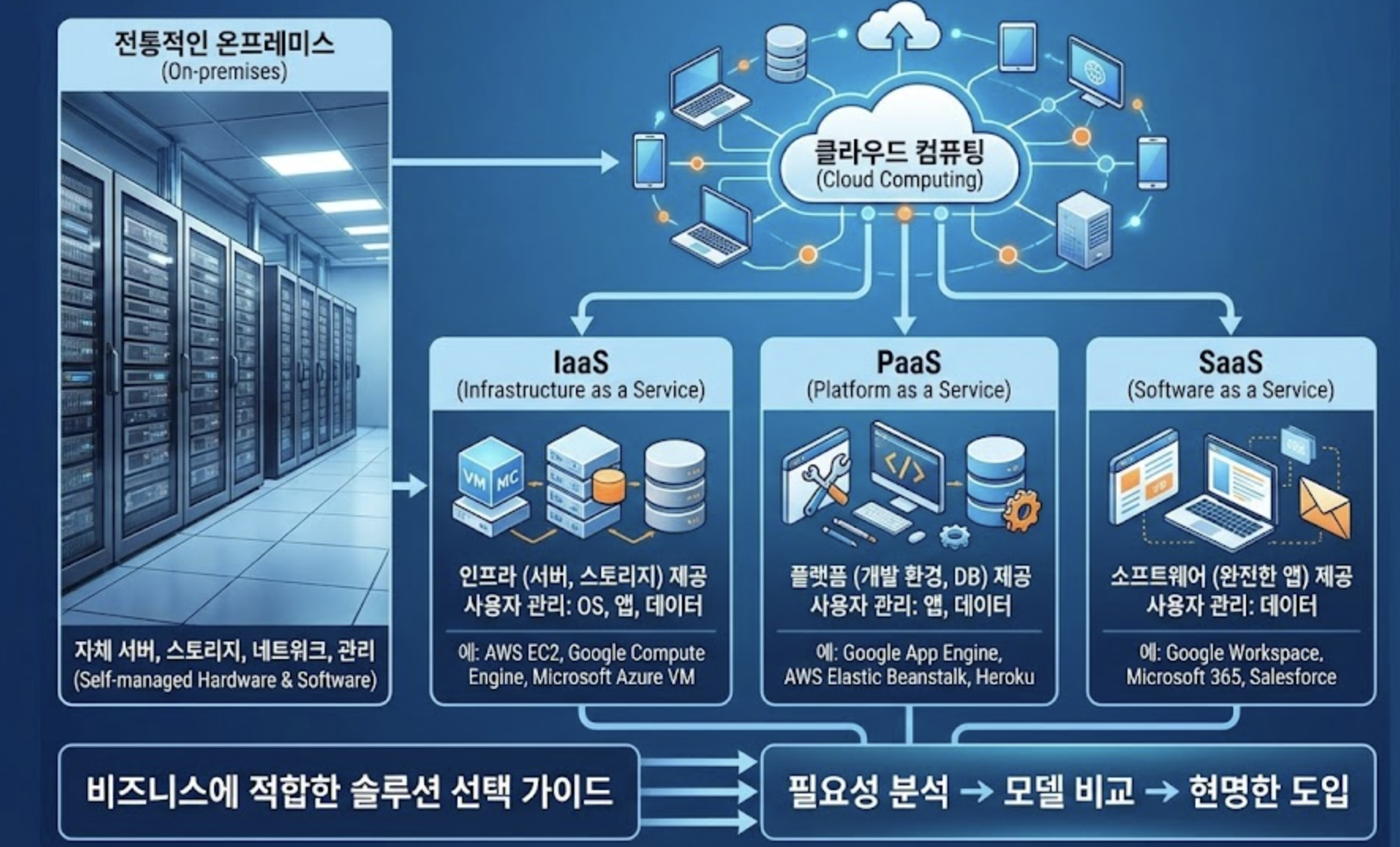 클라우드 서비스 종류 완전 분석: On-premises, IaaS, PaaS, SaaS 비교와 최적의 클라우드 도입 가이드